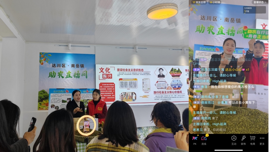 (2024年12月,电商青年及志愿者在达川区南岳镇助农直播间直播带货)