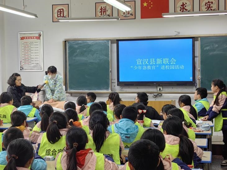 12月24日,宣汉县委统战部、县新联会在宣汉中学来鹿学校开展“少年急救官”生命教育科学艺术展进校园公益活动,1321名师生参加。