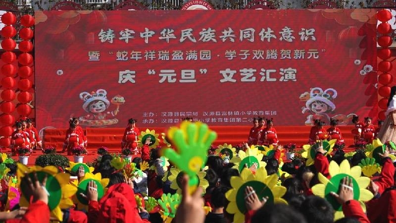 12月31日,由汉源县民宗局、富林镇小学教育集团主办的“铸牢中华民族共同体意识暨‘蛇年祥瑞盈满园·学子欢腾贺新元’2025年元旦文艺汇演”在富林镇第二小学举行,县委统战部副部长、县民宗局局长辛海龙出席活动,多所小学师生欢聚一堂,共迎新年,用歌声讴歌伟大祖国、用舞步描绘绚丽青春。