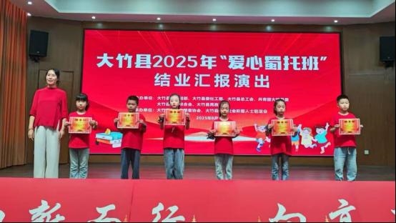 8月16日,由达州市大竹县委统战部、县总工会、团县委等相关部门联合主办的大竹县第十届“青少年公益学校——爱心蜀托班”结业汇演在数字经济产业园二楼会议厅成功举行。