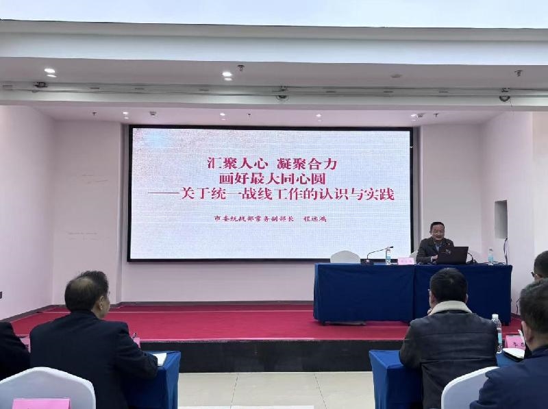 在理论辅导环节,邀请市委统战部常务副部长程远鸿作专题授课。他围绕“汇聚人心 凝聚合力 画好最大同心圆”讲解关于统一战线工作的认识与实践,分享了统一战线的历史底蕴、政策的创新发展、新时代统战工作的实践路径等内容。授课既有理论高度,又有实践深度,通过典型案例分析和实践经验分享,帮助会员深化对统一战线这一重要法宝的认识和理解。