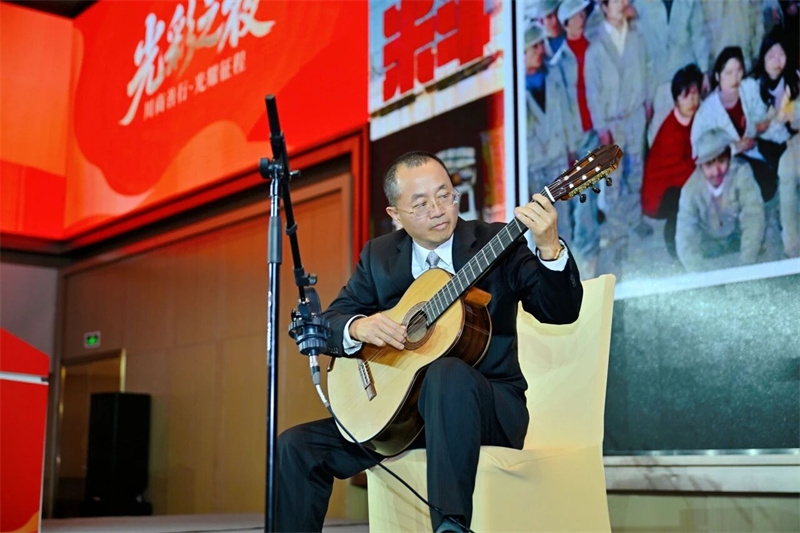 活动现场,省工商联副主席、省光彩会副会长、四川好惠捷建材集团有限公司董事长何建军带来《光彩如诉——爱的罗曼史》古典吉他独奏,以悠扬音符为媒,传递出光彩事业的温润底色,为现场增添了别样温情。