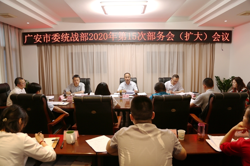 6月9日,广安市委统战部召开2020年第15次部务会(扩大)会议,传达学习全省统战宣传文化工作会议精神,研究贯彻落实举措。市委常委、统战部部长陈伟主持会议并讲话。