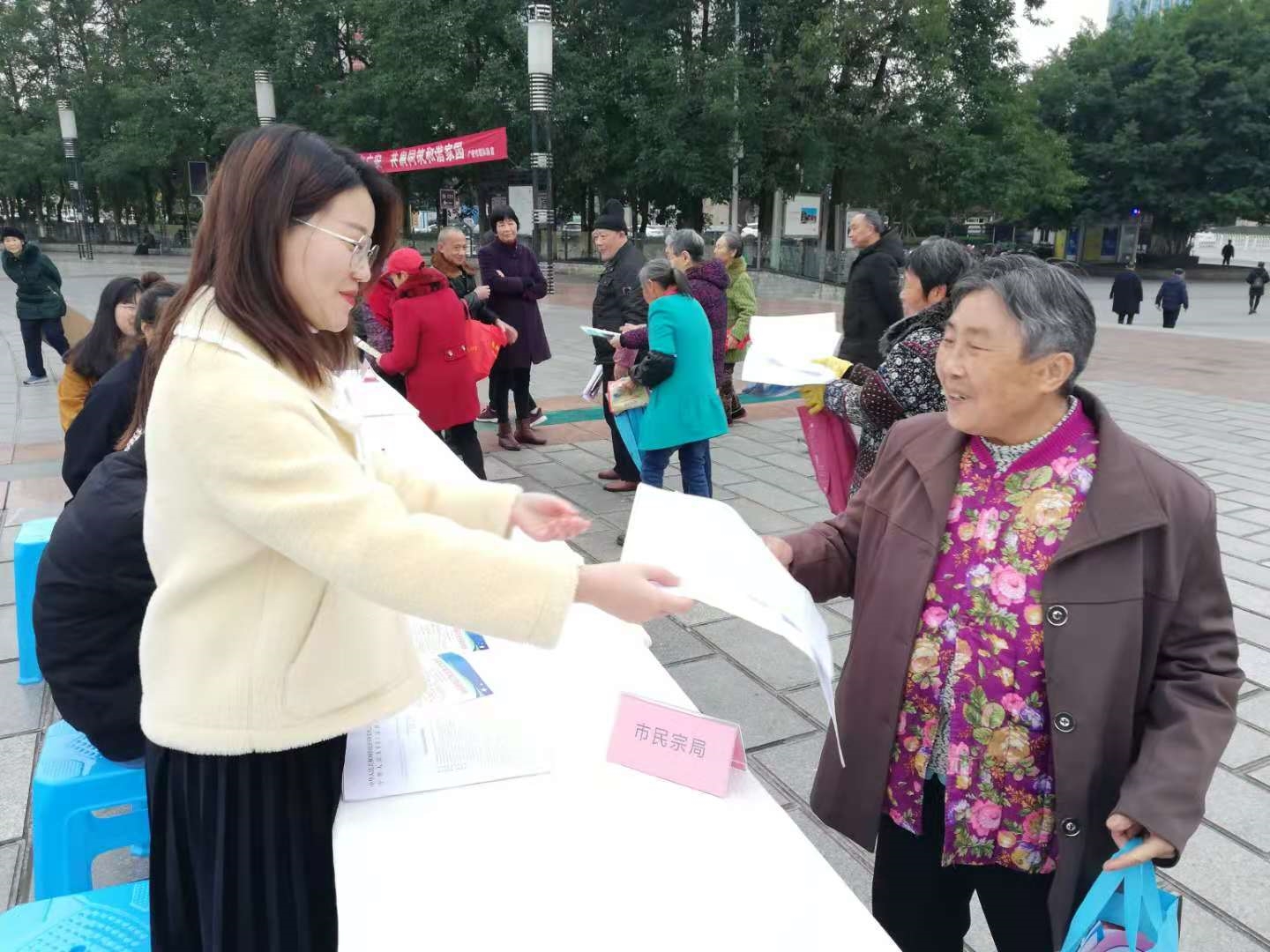 12月2日上午,广安市在思源广场举行民族宗教政策法规集中宣传活动。市委统战部副部长、市民宗局局长谌念敏参加活动。