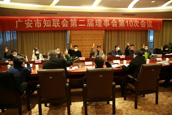 12月18日,广安市知联会召开二届理事会第10次会议,传达学习党的十九届五中全会、省委十一届八次全会和省知联会第四届一次会员大会精神。市知联会会长康永恒主持会议,市委统战部副部长白小兵出席会议。