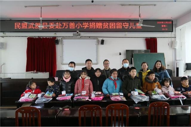 民盟武胜县委一行亲切地询问了孩子们的学习、生活情况和家庭状况,告诉他们虽然父母不在身边,但他们仍然是祖国的花朵和父母的希望,社会各界都很关心他们。勉励孩子们要心怀感恩,勇敢进取,努力克服学习和生活中遇到的困难,以优异的成绩、健康的体魄报效祖国、回报社会,成为对社会、国家和家庭有用的人。万善小学校长邓毅组织孩子们接受捐赠并表示感谢。