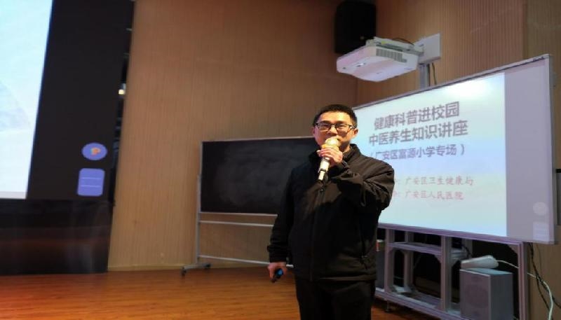 为增强教职工的健康意识,关注广大教职工的身体健康,2022年4月15日,民盟广安区总支部委员、广安市广安区人民医院支部主委、中医综合科主任李建国受富源小学邀请,为全体教职工进行医疗健康讲座。