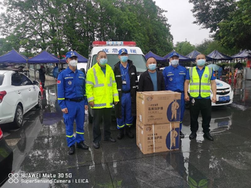 ▲四川特凌优医疗器械有限公司为社区捐赠医用防护服