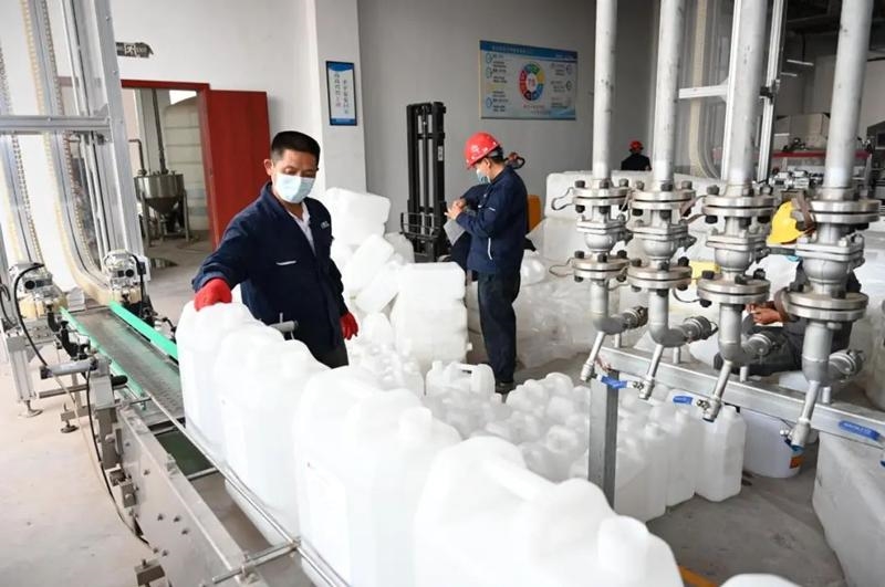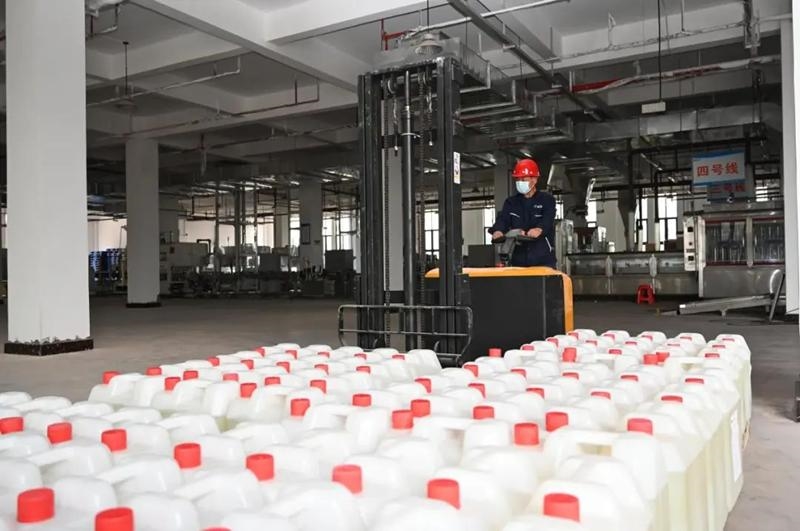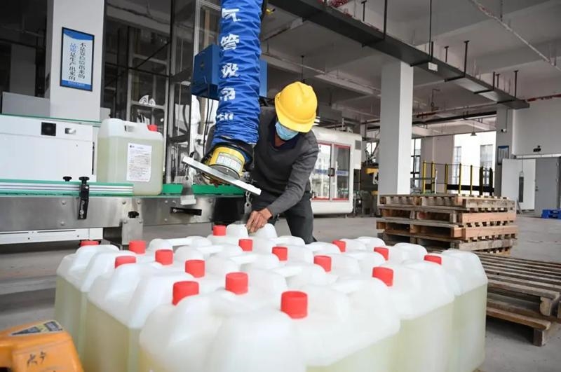 “我们这有原料!”“我们企业可以打包和罐装! ”广安经开区新桥化工园区民营企业诚信化工,联合民喜生物等企业,利用各自企业资源,加班加点生产了40吨消毒液,在统一打包消杀后,将分批送往抗疫一线,为全市在最短时间内实现社会面清零目标贡献广安经开区力量。