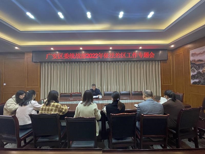 为认真贯彻落实习近平法治思想,全面推广应用“1+8”示范试点成果,着力推进统战领域依法治理工作,11月29日,广安区委统战部组织召开了依法治区专题会,会议由区委统战部常务副部长、区民宗局局长杨贵斌主持,全体干部职工参加会议。