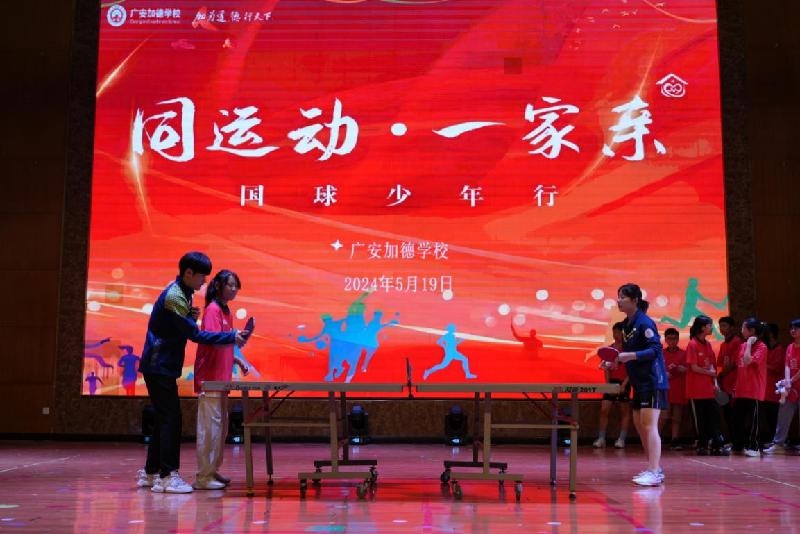 据悉,此次活动是省民族宗教委、省教育厅、省体育局、省财政厅联合创新发起的“同运动·一家亲”系列活动的重要内容,旨在围绕铸牢中华民族共同体意识这条主线,让各族群众在体育运动中广泛交往、全面交流、深度交融,大力营造中华民族一家亲的浓厚社会氛围。活动持续3天,广安加德学校是此次活动的第一站,接下来还将在武胜中学校和广安职业技术学院继续开展“国球少年行”和“城市嘉年华活动”。