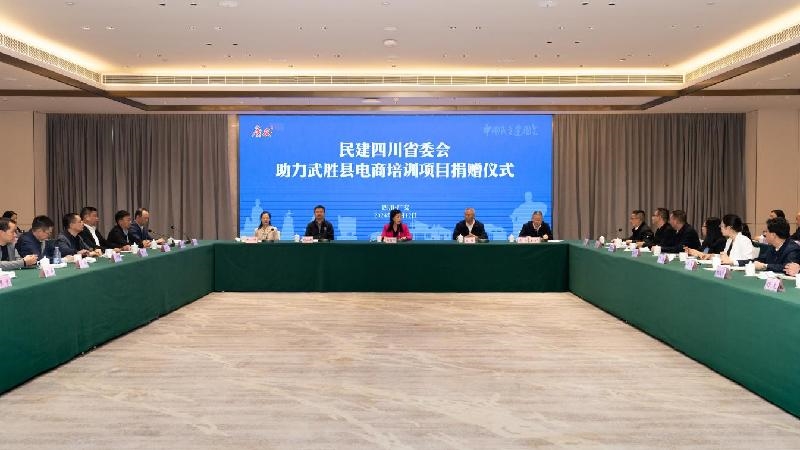 10月12日,民建四川省委会助力武胜县电商培训项目捐赠仪式在广安富盈酒店举行,省政协副主席、民建四川省委会主委、省中华职教社社务委员会主任谢商华出席会议并讲话。广安市委常委、统战部部长文阁,民建广安市委会主委吴涛,武胜县委书记陈俊楠参加会议。