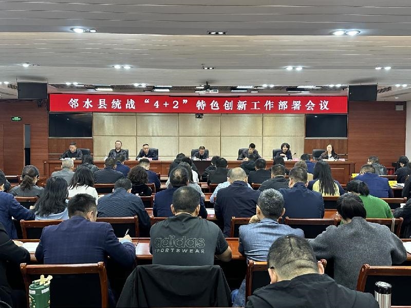 11月1日,邻水县统战“4+2”特色创新工作部署会议召开,县委常委、统战部部长汪洋主持会议,党外副县级领导、各镇统战委员、广安高新区、川渝合作高滩园区分管负责人、县级部门统战工作分管负责人、县内民主党派人士、新阶人士、党外知识分子代表参加会议。