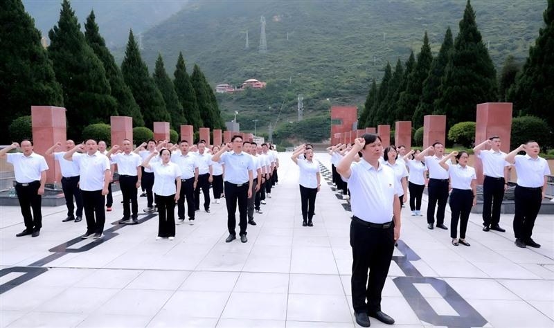 我志愿加入中国共产党,拥护党的纲领,遵守党的章程,履行党员义务,执行党的决定……在鲜红的党旗下,全体党员重温入党誓词。铿锵有力的誓言在纪念馆前回荡,彰显着新时代共产党员的坚定信念。