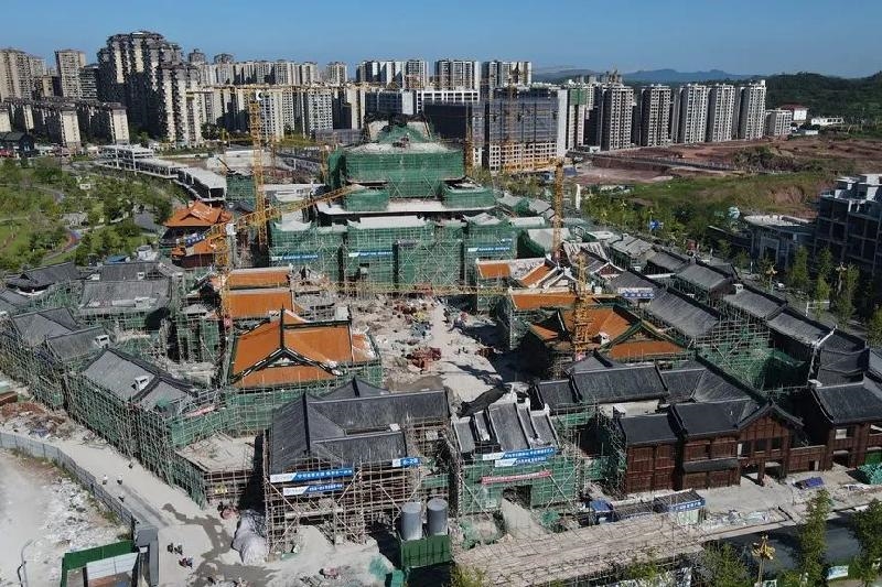 早上8点,走进曲艺百花园施工现场,记者看到,塔吊林立,复古建筑群在阳光下初显轮廓,工人师傅们穿梭于楼宇间进行内外装修作业,机械轰鸣声与施工敲击声交织,现场一派繁忙的景象。作为岳池县重点文旅项目,其建成后将成为全国首个曲艺文化主题园,预计年接待游客超120万人次,带动文旅消费超5亿元。