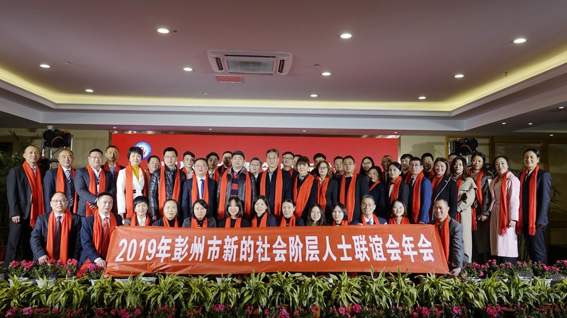 2020年1月8日, 以“凝聚新力量,筑梦新时代”为主题的彭州市新联会2019年年会在彭州市信一雅阁酒店隆重举行。彭州市委常委、统战部部长晏渃海、彭州市人大副主任罗永富、彭州市政协副主席胥全富、成都市新联会副会长李佳蔚、彭州各民主党派、各统战团体代表与彭州市新的社会阶层联谊会全体会员欢聚一堂,共庆彭州市新的社会阶层联谊会年会盛典。