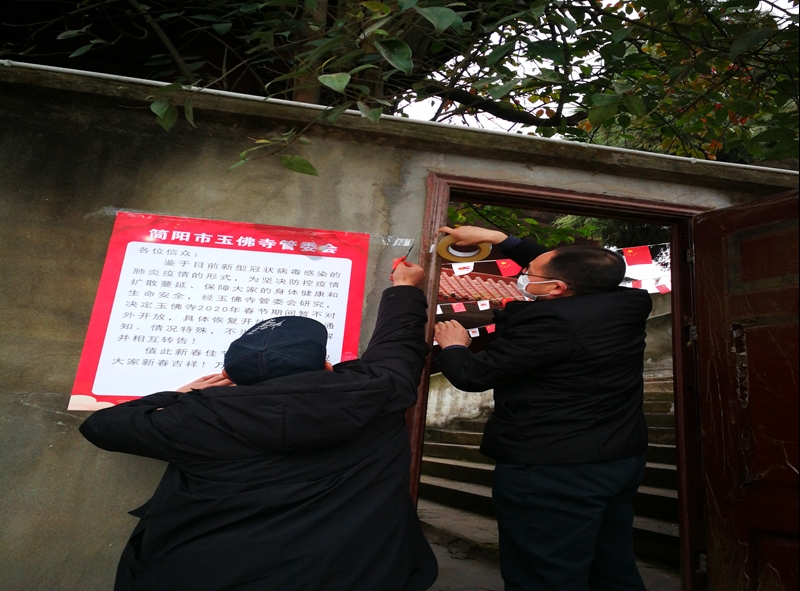 二是强化宣传,一线引导。1月24日(除夕),简阳市委统战部(市民宗局)迅速指导全市宗教活动场所张贴暂停对外开放公告200余张,利用QQ、微信等新媒体第一时间宣传宗教场所暂停开放的通知及疫情防控相关知识,通过简阳统一战线微信公众号发布《致全市统一战线成员的倡议书》,号召简阳市广大统一战线成员积极响应中央、省、成都市和简阳市委关于疫情防控的各项重要部署,有序开展疫情防控工作,为打赢疫情攻坚战贡献统一战线全部智慧和力量。市民宗局第一时间引导全市佛、道、天、基四大宗教团体发出《简阳市宗教界共同做好新型冠状病毒感染肺炎疫情防控工作的倡议书》,号召全市宗教教职人员和信教群众坚定信心、弘扬爱国爱教精神、做好舆论引导、发扬乐善好施传统,为疫情防控工作贡献简阳宗教界力量。