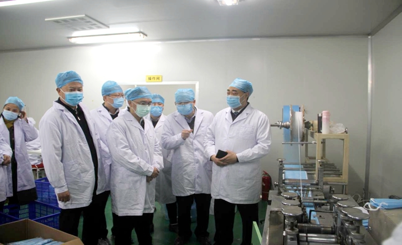 在向往科技开发公司,袁闻聪一行走进生产车间,实地了解企业生产计划安排、原材料储备以及生产线运行等情况,并听取了企业复工复产后存在的困难和问题。袁闻聪袁要求,在做好职工安全防护的基础上,进一步加大原料储备,千方百计扩大生产,确保产能及质量,加大口罩供应力度,更好地满足疫情防控物资需求。