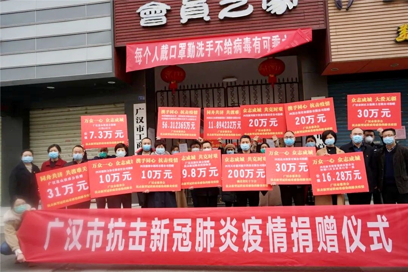 新冠肺炎疫情发生以来,广汉民营企业、商会组织积极响应市委统战部、市工商联《抗击新型肺炎疫情“万人接力”倡议书》的号召,弘扬优秀企业家精神和“义利兼顾、以义为先”的理念,积极主动向疫区捐款捐物。据不完全统计,截至2月19日,广汉民营企业、商会组织为抗击新冠肺炎疫情捐款2535.56万元、捐赠物资1743.59万元。