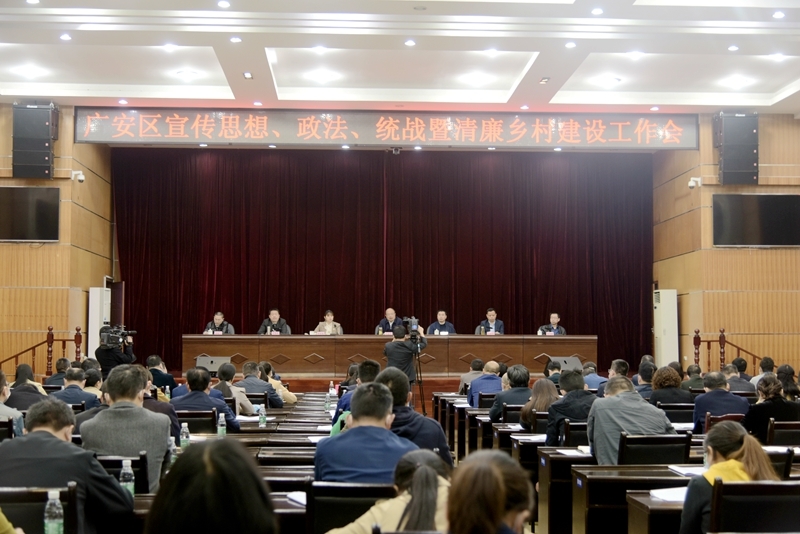 4月21日,广安区宣传思想、政法、统战暨清廉乡村建设工作会议在区公安分局召开。会议深入学习贯彻全国、全省统战部长会议和全市统战部长会议暨宗教工作会议精神,全面总结2019年统战工作,安排部署2020年统战工作任务。市人大常委会副主任、区委书记文建平出席会议并讲话。
