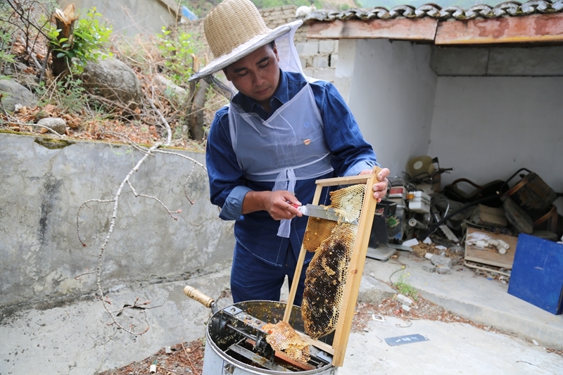 胥国平除了管理好援建的蜜蜂养殖园以外,还手把手教村民们养蜂技巧,目前,胥国平已经有三个“徒弟”出师了,他们不但参与集体蜜蜂养殖园管理,还发展了自己的家庭蜜蜂养殖,最多的一户养了5箱蜜蜂,每年可增收数千元。