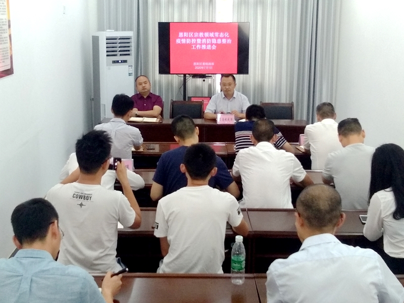 近日,恩阳区召开宗教领域常态化疫情防控暨消防隐患整治工作推进会,区委统战部副部长马龙辉主持会议,18个镇(街道)统战委员、区级相关部门统战工作分管领导参加会议,会议传达学习了《中共四川省委统战部 四川省民族宗教事务委员会关于做好我省宗教宗教领域常态化疫情防控工作的通知》和《四川省森林防灭火专项整治实施方案》文件精神,并就相关工作作了安排部署。