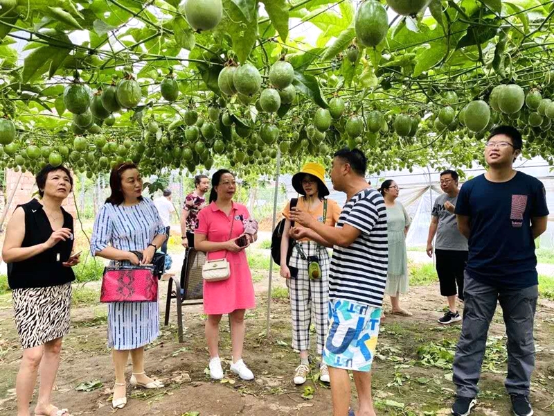 第一站实地调研了牛华百果香特色产业园和树葡萄、树西瓜、西梅种植基地。调研过程中,种植园负责人向大家介绍了这些特色水果,不择土壤,产量高,味道鲜美,将发展牛华果园采摘游,让游客既能欣赏果园风光,又能体验亲手采摘的乐趣。同时大力创新特色食谱,将水果纳入食谱中,打造特色名菜。还在周边建农家乐、餐饮、民宿等各类乡村旅游配套设施,拓宽当地农民致富渠道,将乡村旅游与特色农业相结合,将乡村振兴与乡村扶贫相结合。