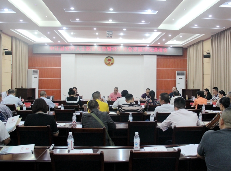 7月31日,中江召开党外人士脱贫攻坚暨经济社会发展情况通报会。县委常委、统战部部长周勇,县人大常委会副主任汪怀玉,县政协副主席高芳出席会议。各民主党派(团体)、县工商联(总商会)代表以及宗教界代表人士参加会议。