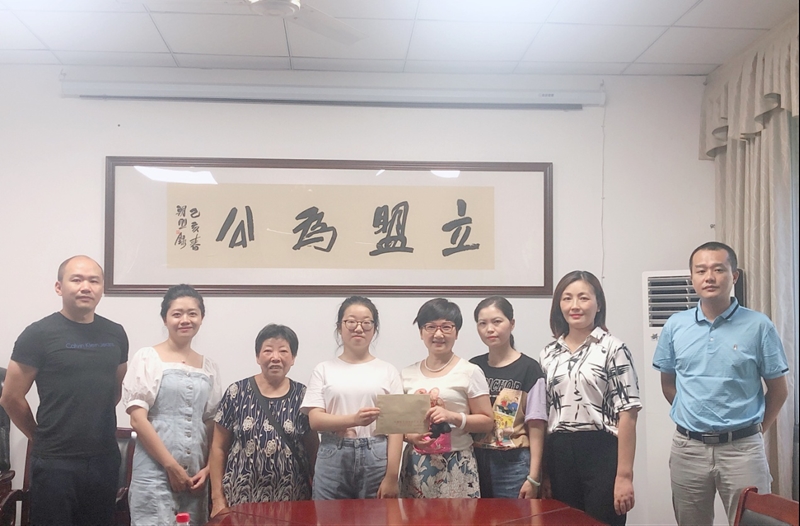 该学子系内江六中学生,家境贫寒,父亲长年在外打工,由祖父母抚养长大。三年前,民盟市中区支部通过市中区妇联了解到她的情况,主动与她结对,并成为她的“爱心接力妈妈”,一直资助她完成高中三年学业。这三年里,她逆境成长,刻苦学习,最终考上心仪的大学。