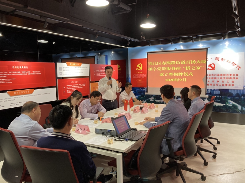 9月23日,锦江区举行春熙路街道百扬大厦楼宇党群服务站“侨之家”揭牌仪式。成都市侨联主席刘智慧,锦江区委常委、区委统战部部长李香贵,成都百货大楼有限公司党委书记、成都百扬实业有限公司副总经理牛荣,锦江区侨联、春熙路街道办负责人以及新侨企业代表、侨联委员、侨界群众等三十余人参加了揭牌仪式。