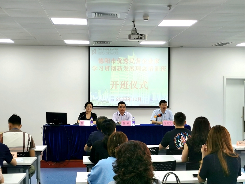 近日,由德阳市委统战部举办的德阳市优秀民营企业家学习贯彻新发展理念培训班在深圳经理进修学院开班。德阳市委常委、统战部部长何雨出席开班式并讲话。市委统战部副部长杨兆红主持会议。