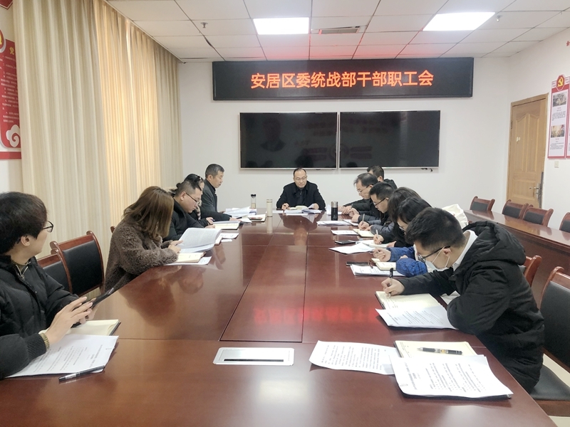 12月22日,遂宁市安居区委统战部召开专题学习会,深入学习省委十一届八次全会、市委七届十一次全会精神。区委常委、统战部部长田斌主持会议并讲话。