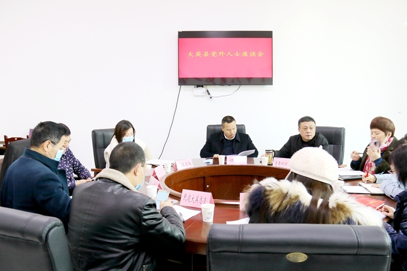 在中共大英县委五届21次全体会议召开前夕,12月21日,大英县委常委、县委办公室主任、县总工会主席谭银受县委书记胡道军的委托,主持召开党外代表人士座谈会,就中共大英县委关于制定国民经济和社会发展第十四个五年规划和2035年远景目标听取党外代表人士的意见与建议。民盟大英总支、农工党大英支部等4个民主党派主委、县工商联负责人、无党派人士代表和县新联会、县知联会负责人参加会议。