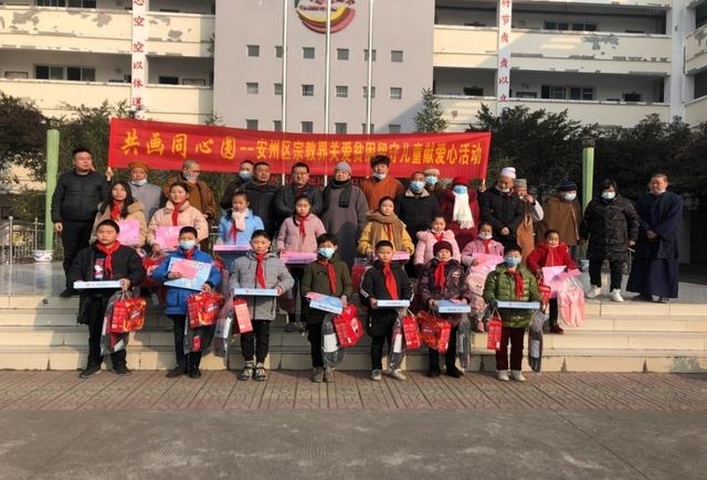 1月14日,在2021年春节来临之际,安州区委常委、统战部部长陈本志带领全区宗教团体、宗教场所负责人到安州区塔水镇宝林小学、清泉小学、清泉初中、塔水一小、塔水二小、塔水中学等6所学校开展宗教界慈善慰问活动,为80名建卡贫困户留守儿童送去价值4万余元的学习文具、生活用品和慰问金。