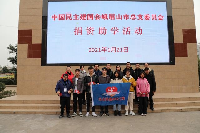 近日,民建峨眉总支"滴水工程——同心助学 共圆学梦"活动在峨眉职业技术学校举行。此次活动共资助学生8人,每人1000元。