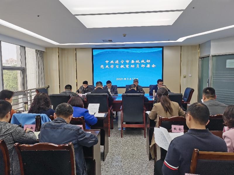 会议传达学习习近平总书记在党史学习教育动员大会上的重要讲话精神,全省党史学习教育动员大会精神,省委、市委庆祝中国共产党成立100周年活动暨党史学习教育领导小组第一次会议精神。通报了《关于成立中共遂宁市委统战部庆祝中国共产党成立100周年活动暨党史学习教育领导小组的通知》。