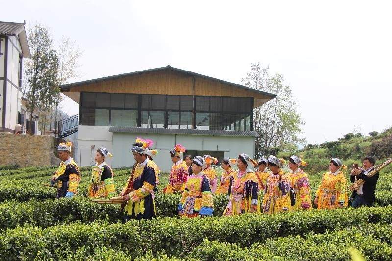 近年来,马嘶苗族乡党委政府充分利用得天独厚的自然资源实施以绿茶产业为核心、种养殖业全面发展的“一核两支多元”大产业格局,同步利用苗族文化、红色文化、茶文化等人文资源,以古蔺县苗岭茶山现代农业园区建设为抓手,打造起集种养循环、采摘体验、民俗展演、餐饮住宿、观光旅游为一体的AA级景区, 茶旅小镇”初具雏形,群众幸福感、获得感不断攀升。所以今年的“踩山节”,苗族同胞身着盛装,自发到民政茶场踩山过苗家“情人节”,在山野宽阔地带、绿茶展销中心和民宿院坝手牵手跳起欢快的苗家芦笙舞,用苗族原生态文化颂扬党的脱贫奔康成果,感恩党的富民政策和伟大领导。