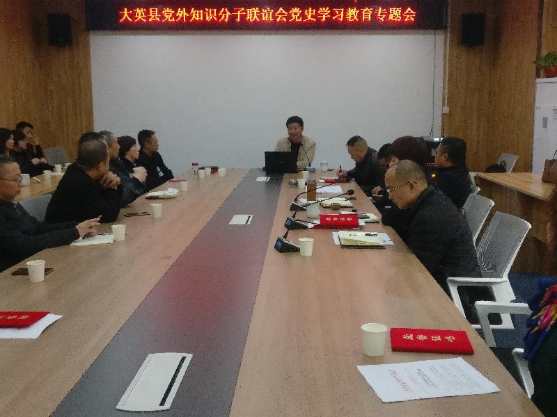 3月30日,大英县知联会组织召开党史学习教育专题会,深入学习贯彻习近平总书记在党史学习教育动员大会上的重要讲话精神,全省党史学习教育动员大会精神,省委、市委、县委庆祝中国共产党成立100周年活动暨党史学习教育领导小组第一次会议精神,邀请原县委统战部副部长谭延明阐释党外知识分子联谊会在中国共产党的坚强领导下的发展历程,县委统战部相关负责同志到会指导。