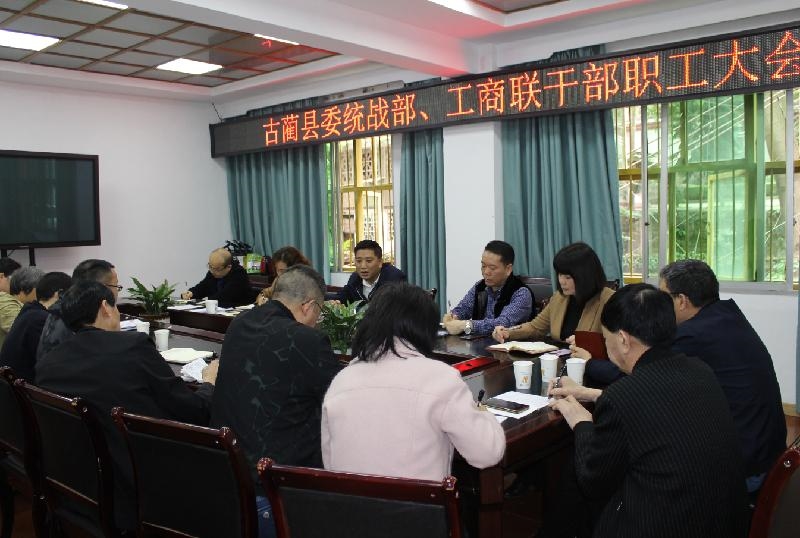 4月19日,古蔺县委统战部、工商联召开全体职工党史学习教育会,县委常委、统战部部长兰杰出席会议,县委统战部常务副部长项富惠主持会议。