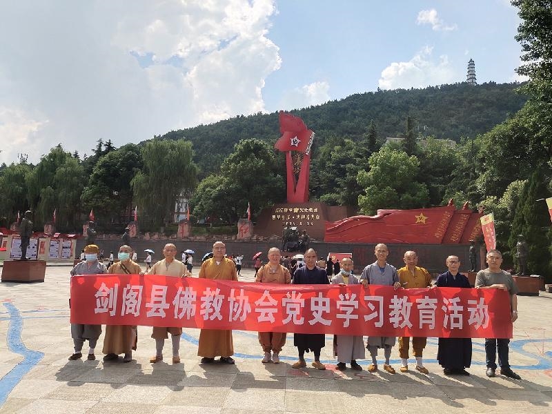 为庆祝中国共产党成立100周年,充分表达剑阁县佛教界对中国共产党的真挚感情,进一步坚定剑阁县佛教界永远听党话、跟党走的坚定决心。6月11日,剑阁县佛教协会在县委统战部(县民宗局)的指导下,组织理事及副秘书长以上成员,赴苍溪县红军渡开展党史学习教育活动,重温革命历史,缅怀革命英烈,该活动正式拉开剑阁县佛教界“爱党爱国爱社会主义”主题教育活动的序幕。