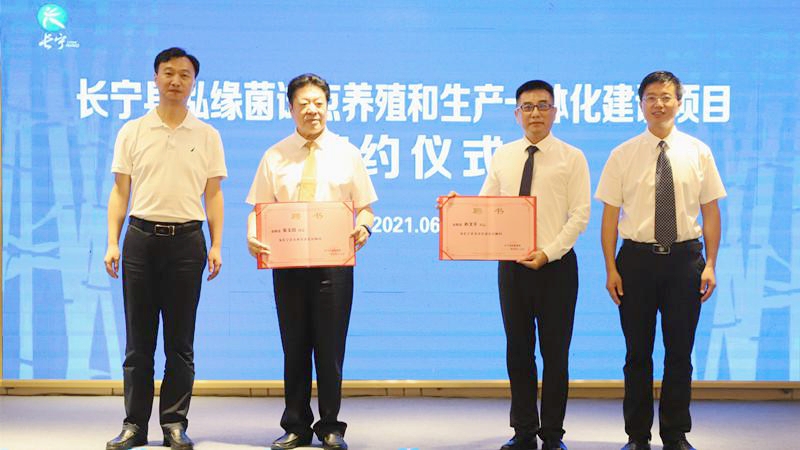 近日,宜宾市长宁县与国家级高新技术企业、海南省农业重点龙头企业--海南泓缘生物科技集团合作的泓缘菌试点养殖和生产一体化建设项目正式签约。长宁县委书记刘刚,县委副书记、代理县长徐创军,县人大常委会主任宋开云,县政协主席周小平出席签约活动,县委副书记陈胜军主持签约仪式。