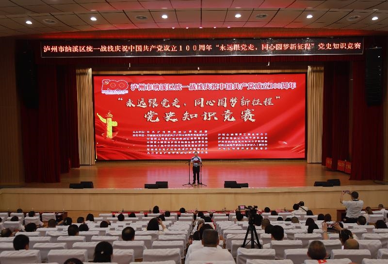 “没有共产党就没有新中国,没有共产党就没有中国特色社会主义,没有共产党就没有中华民族的伟大复兴……”6月18日,激情澎湃的诗歌朗诵拉开了纳溪区统一战线庆祝中国共产党成立100周年“永远跟党走,同心圆梦新征程”党史知识竞赛序幕。区委副书记、区长袁维荣,区人大党组书记、主任熊杰,区政协党组书记、主席潘浩等区领导出席活动,区级各部门(单位)、乡镇(街道)统战工作分管领导,区辖民主党派、统战团体代表,少数民族、宗教界人士等200余人参加。