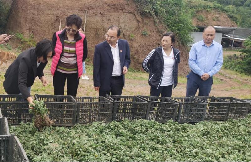 温奇志来到云顶镇云凤村三森中药材种植专业合作社进行实地调研。先后参观了企业产品展厅、种植基地等,并听取了合作社业负责人的情况介绍。