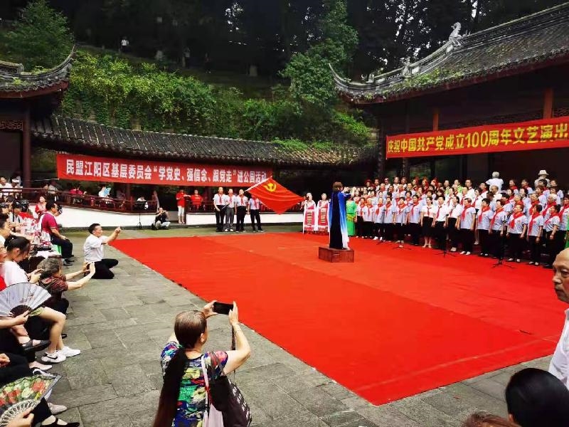 在党的生日来临之际,6月20日,民盟江阳区基层委员会“学党史、强信念、跟党走”进公园活动在泸州忠山公园举行。盟员们与忠山歌友会歌友们欢聚一堂,开展庆祝中国共产党成立100周年文艺演出,热情讴歌伟大的党百年辉煌,唱响“颂党恩、跟党走、守初心”的时代心声。