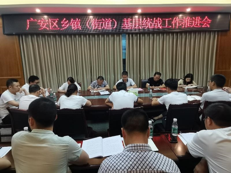 7月21日,广安区召开乡镇(街道)统战工作推进会。区委统战部常委副部长杨贵斌主持并讲话,区委统战部全体班子成员、各乡镇(街道)统战委员、区委统战部全体干部职工参加会议。