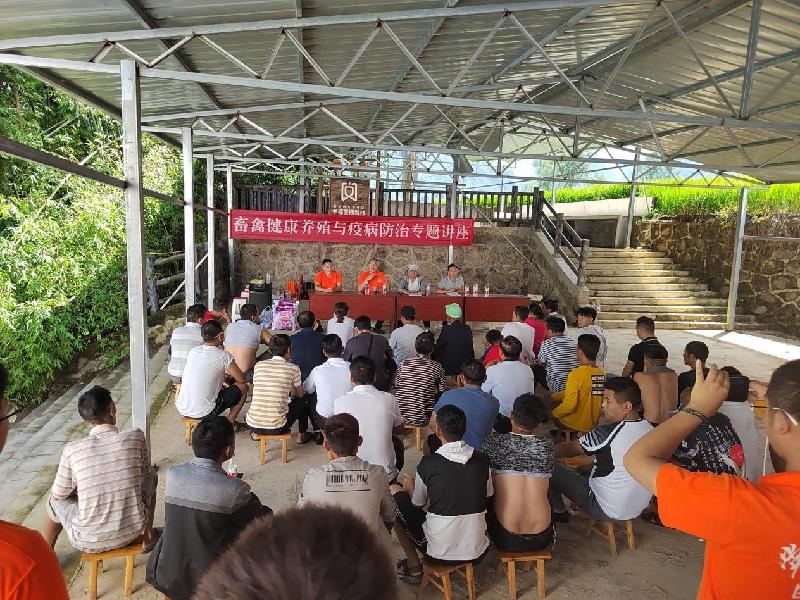 志愿服务队一行来到甘洛县阿尔乡地坝村等乡村,查看畜禽养殖现场。为提高当地养殖户基本防疫理念和养殖防疫技术,举办了“畜禽健康养殖与疫病防治”专题讲座,用通俗易懂的言语,向当地乡民,阐述畜禽养殖的基本注意事项。