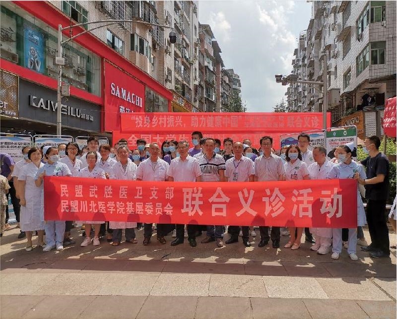 启动仪式结束后,民盟川北医学院基层委员会义诊专家团队、“肝愿襄照”爱心医疗服务队与民盟武胜医卫支部盟员组成的义诊专家和医护人员队伍在沿口镇步行街举行联合义诊活动。