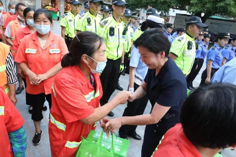7月23日,巴州区委常委、统战部长、区总工会主席孙蓉带队深入基层一线开展“夏送清凉”慰问活动,为奋战在高温一线的重点设施建设项目工人、执法人员、环卫工人、民营企业、社区职工和医务工作者送去清凉物资的同时也送去党和政府的亲切关怀。