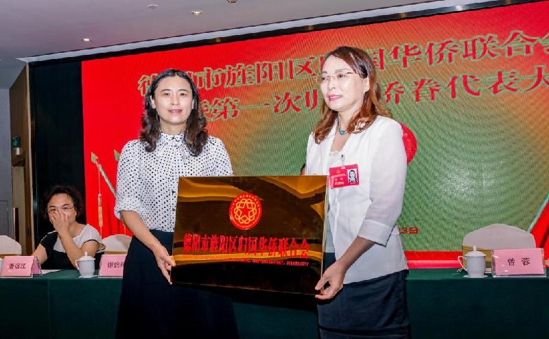市委统战部常务副部长、市侨办主任、市委台办主任曾蓉为“德阳市旌阳区归国华侨联合会”授牌。