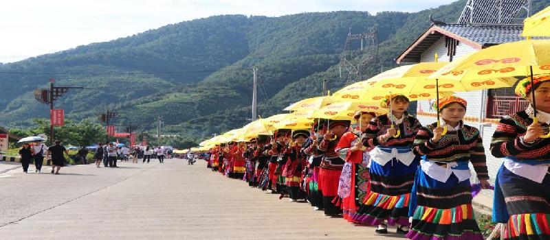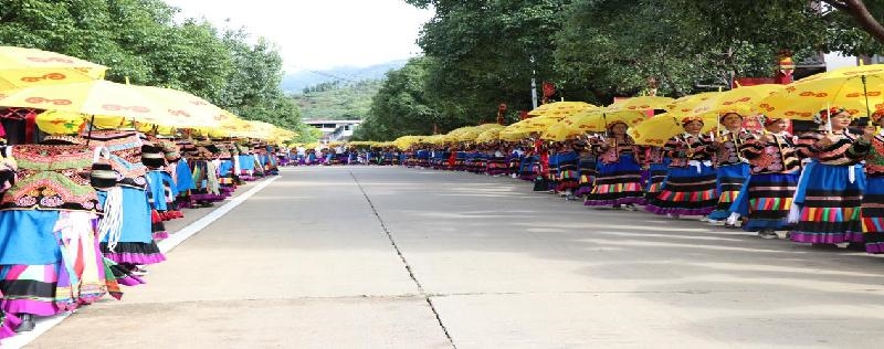 活动在彝族传统舞蹈《朵洛荷》中拉开帷幕,伴随着优美的音乐,打着黄油伞的彝家姑娘,踏着朵洛荷优美的节奏,穿着百褶裙款款走来。彝家阿妹曼妙的身姿,舒缓而动的彩衣彩裙,在这清凉之夏演绎着民族之美、文化之美、和谐之美。